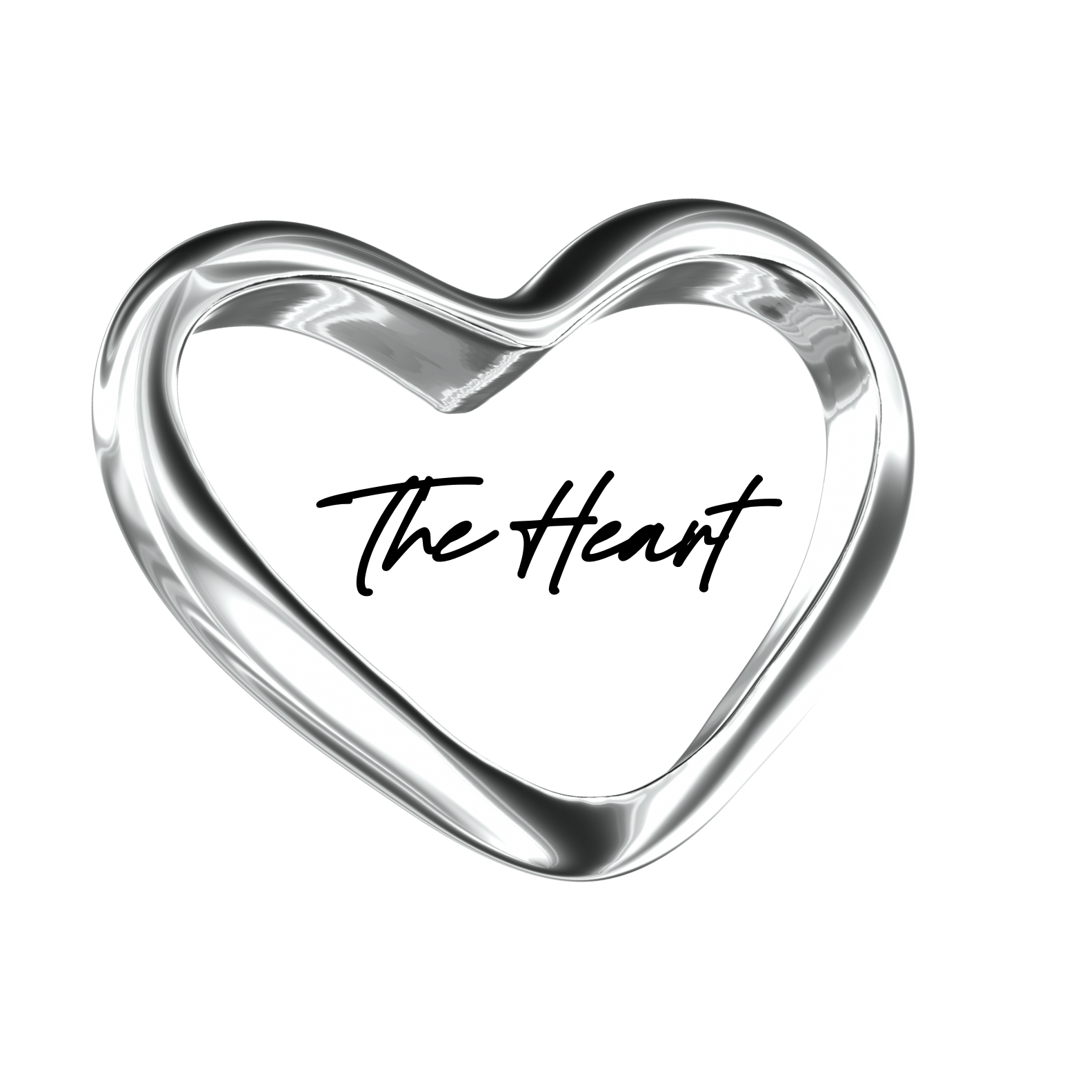 A shiny silver heart-shaped ring with a black hidden message inside.